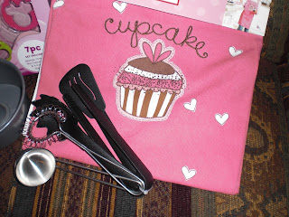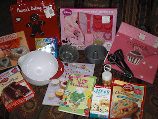 I found this apron after Valentines Day for half off at Target. The little cupcake on the front gave me the idea to do a baking selection of stuff for her, as I have watched her meticulously decorate a gingerbread cookie for 10 minutes. She has the creative gene from our side of the family. She will love being creative in her little pink kitchen.