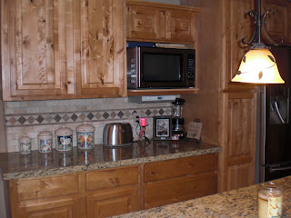I loved the lighting fixtures we picked out. The little pendant lights (from Lowe’s) add so much over an island. I loved the dark wrought iron design with the leaves curling around the smoky glass pendants. We tried to match an existing ceiling fixture we had bought from my daughter’s new house when she wanted to choose a more modern fixture for her kitchen. I happened to love hers and after she put it up for sale on KSL I told her take it down because I was buying it! Then we found matching pendants and ceiling flush lights for the adjoining den and wall sconces leading down to the basement. We lucked out here and found pretty good deals on all. And boy we had some UGLY lights before!