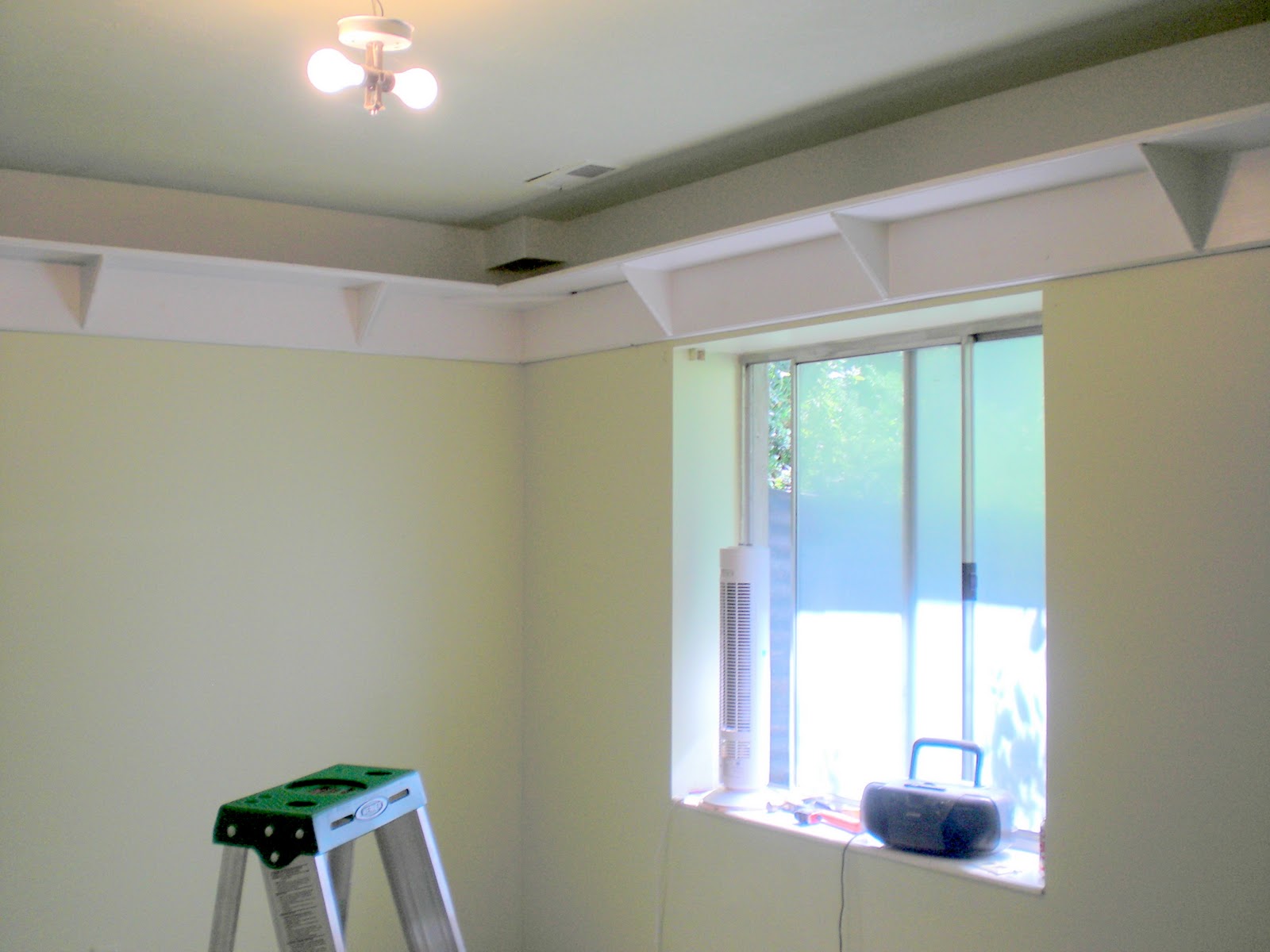 I always hated this room when we bought this house. It was an added on room and there were all these weird little bumpouts and wiring boxes up by the ceiling. I wondered why in the heck they did not try to make it a smoother room. It looked like a “me and my redneck brothers decided to build a bedroom” type job. So I decided to redecorate the room, thinking I could hide some of its flaws.