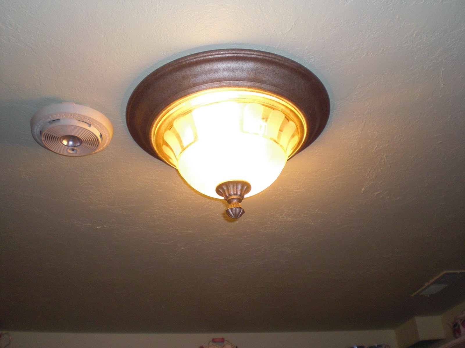 | New ceiling fixture…I liked this one…it looks antiqued….my husband called the old lamps “boob lamps” well, because they kind look like boobs up on the ceiling…you know the ones I’m talkin about! |