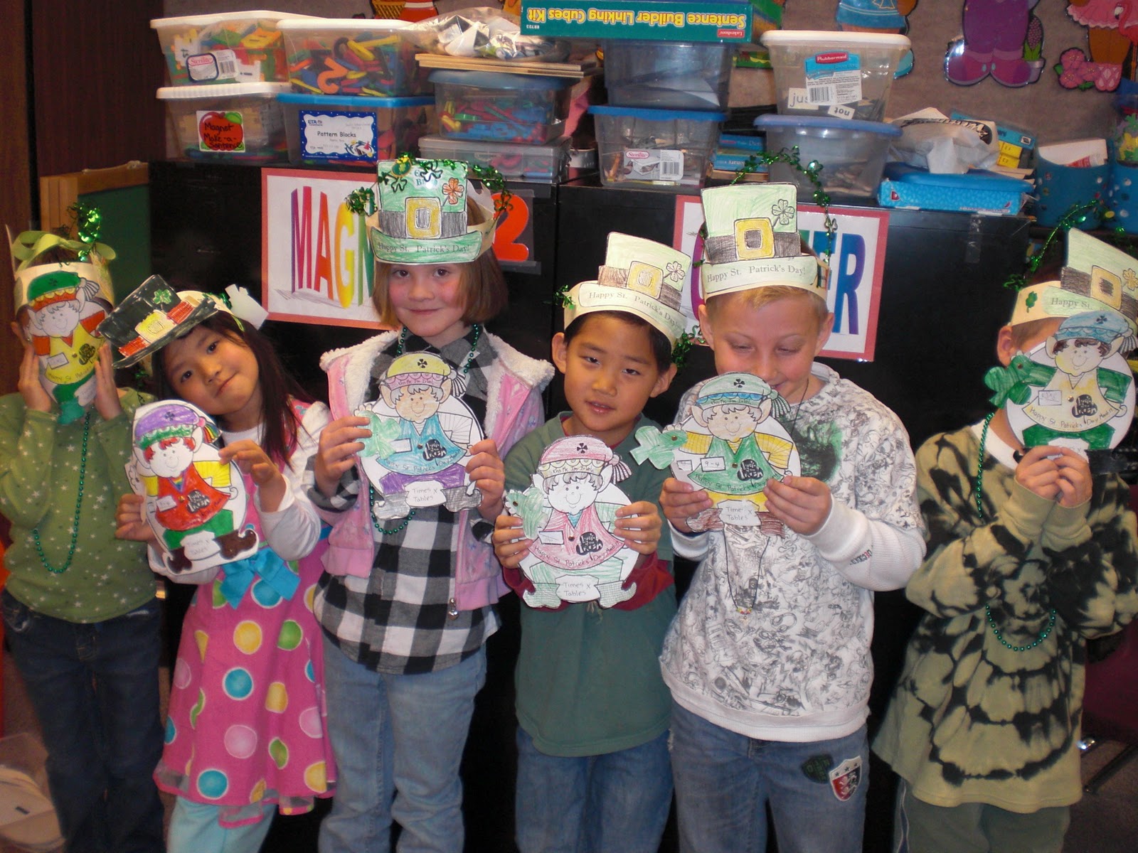 | My class in their Leprechaun Hats and leprechaun math wheels… |