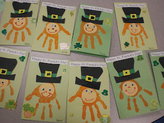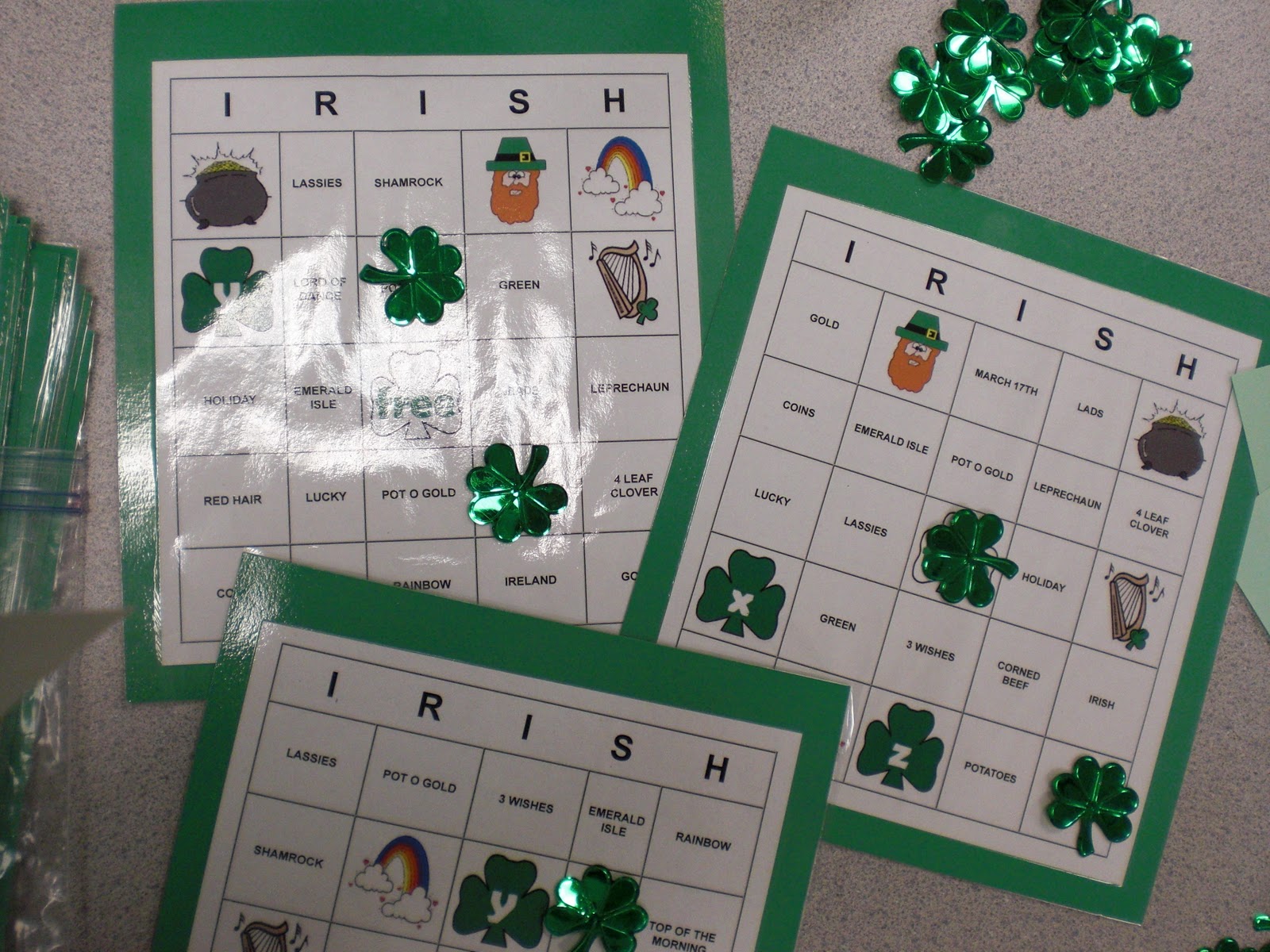 I have some fun with the kids knocking over chairs and making little footprints around the room with green glitter, using a little stencil shaped like a small doll’s footprint. Then I knock over the chairs while they are at recess or lunch. They come back and are all squealing with delight that the Leprechauns came to visit them.