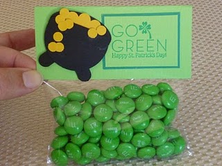 Let’s have a party! I want to fill some little black “pots” I bought with some gold ROLO candies, some gold almond kisses, and some gold coins. Maybe I’ll add a few green gumdrops or green jelly beans. A cute topper for the bag of treats can be found at Chicoandjo.com. They have lots of cute party ideas. Link is HERE