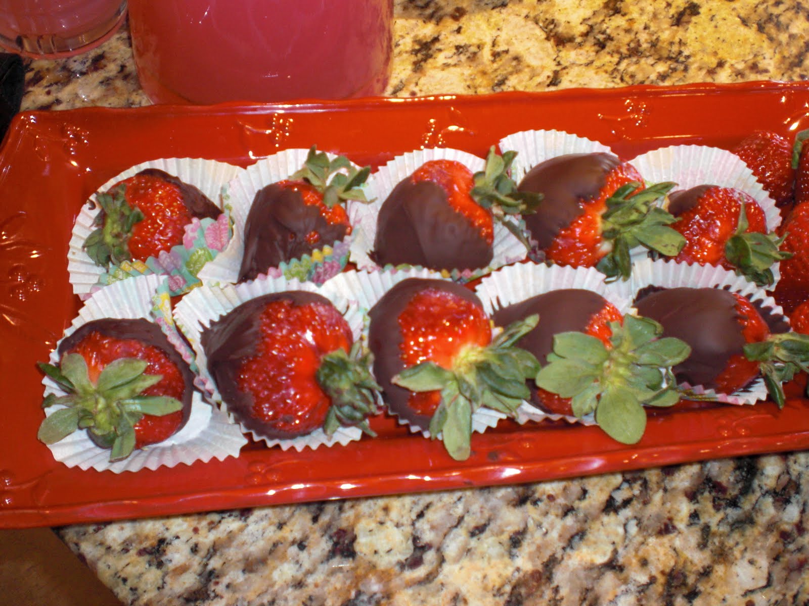 And she hosted the yummy ham dinner. I only had to bring cheesy potatoes. And I brought some HUGE strawberries I got from Costco that I dipped in chocolate chips. They are really sweet and yummy.