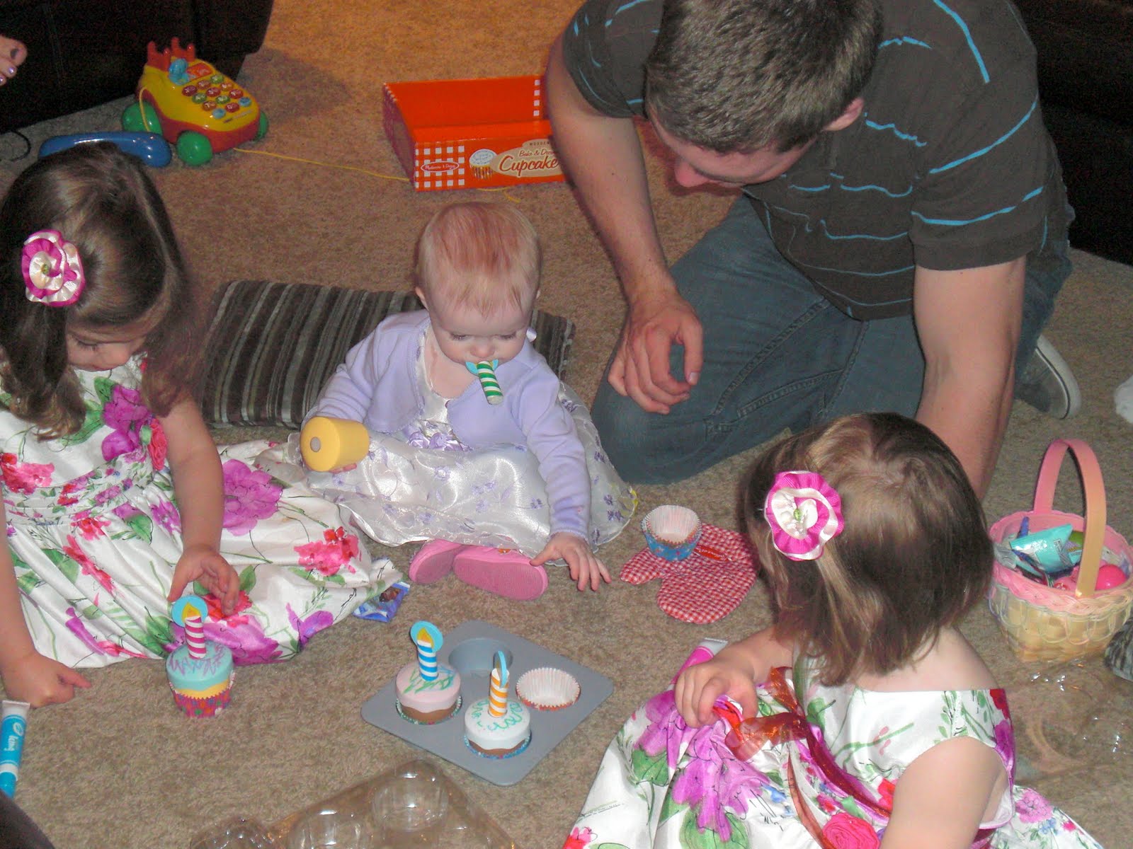 Marisa’s birthday was a few days ago so Tiff made birthday cakes and we had a party for her too. She got lots of cute gifts. But we think her favorite was just the glow stick and pinwheel used for wrapping up the presents. It is so funny that kids will play with wrapping more than the toys. But she DID like the toys.