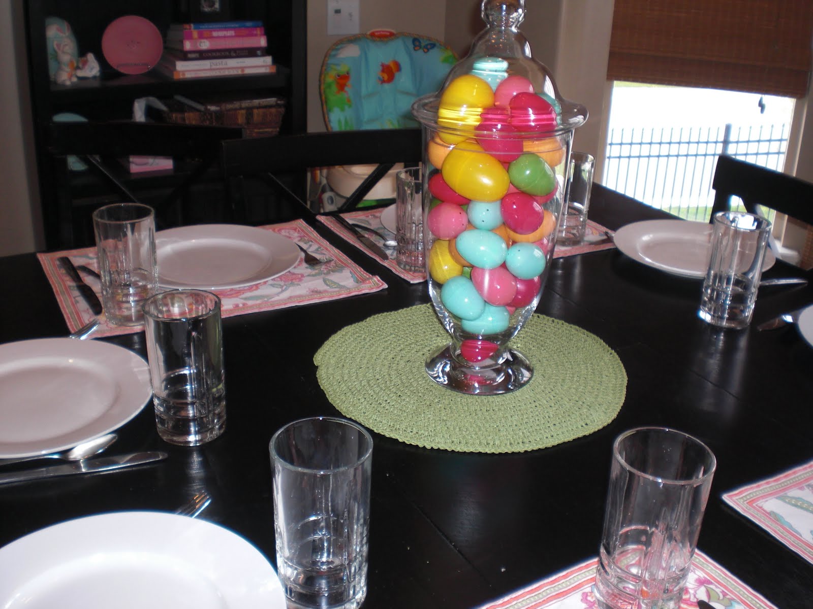 | Tiff’s table decor….We had an Easter Egg Hunt with all the eggs… |