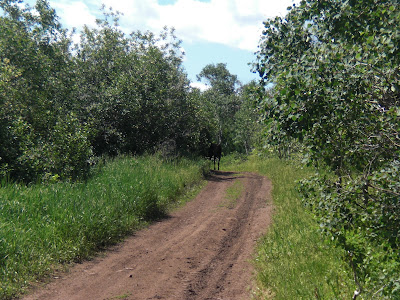| We saw a giant moose coming up our trail so we turned around and went the other way! Shoo Moose! |