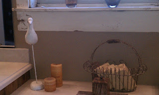 | and bath doo dads…so pretty with the weathered wooden mirror…. |