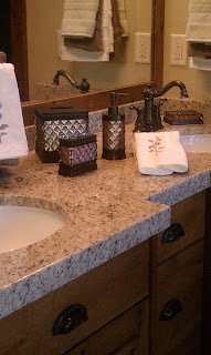 | and bath doo dads…so pretty with the weathered wooden mirror…. |