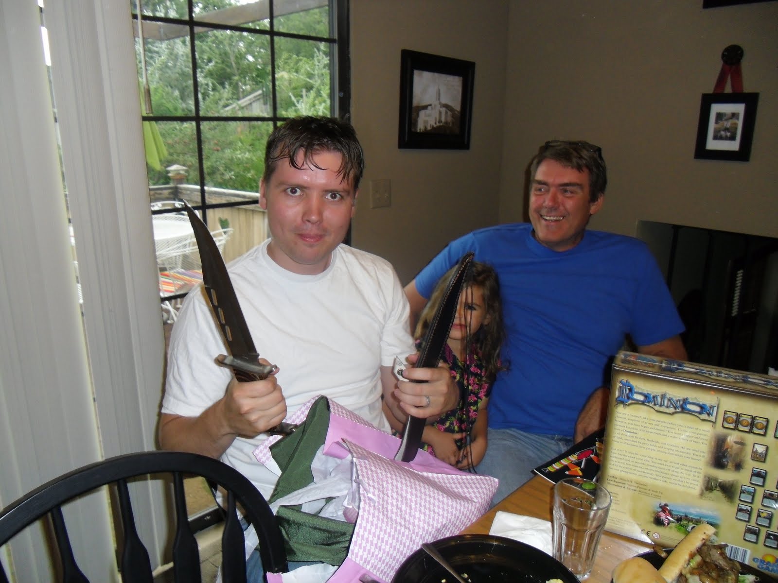 Here’s some of the fun we had. Jeff got a giant Machete knife from his dad. Maybe it’s a hunting knife….I dunno….. I don’t really understand guys and their knives and guns. Gee whiz!