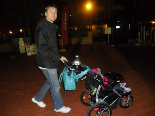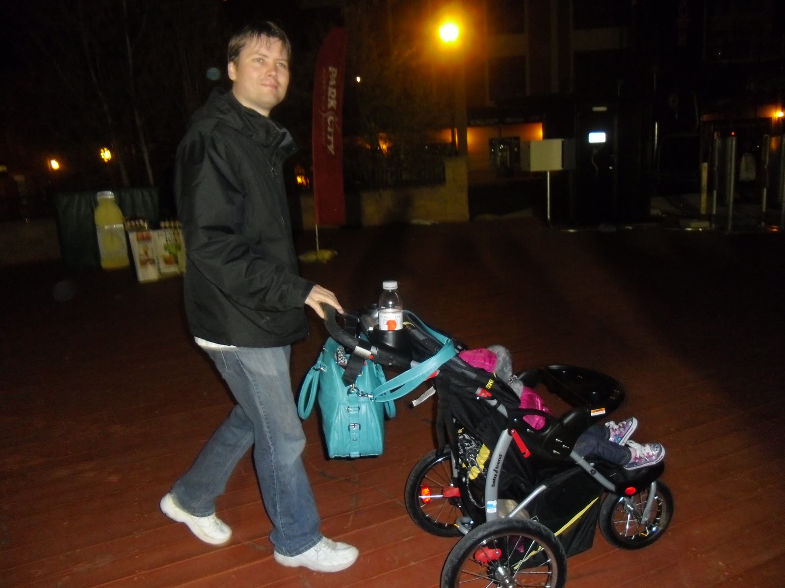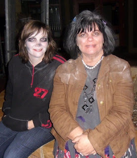 | A couple of us ghouls….baby powdered up as the undead for Thriller…..Park City Plaza October 27th 2011. |