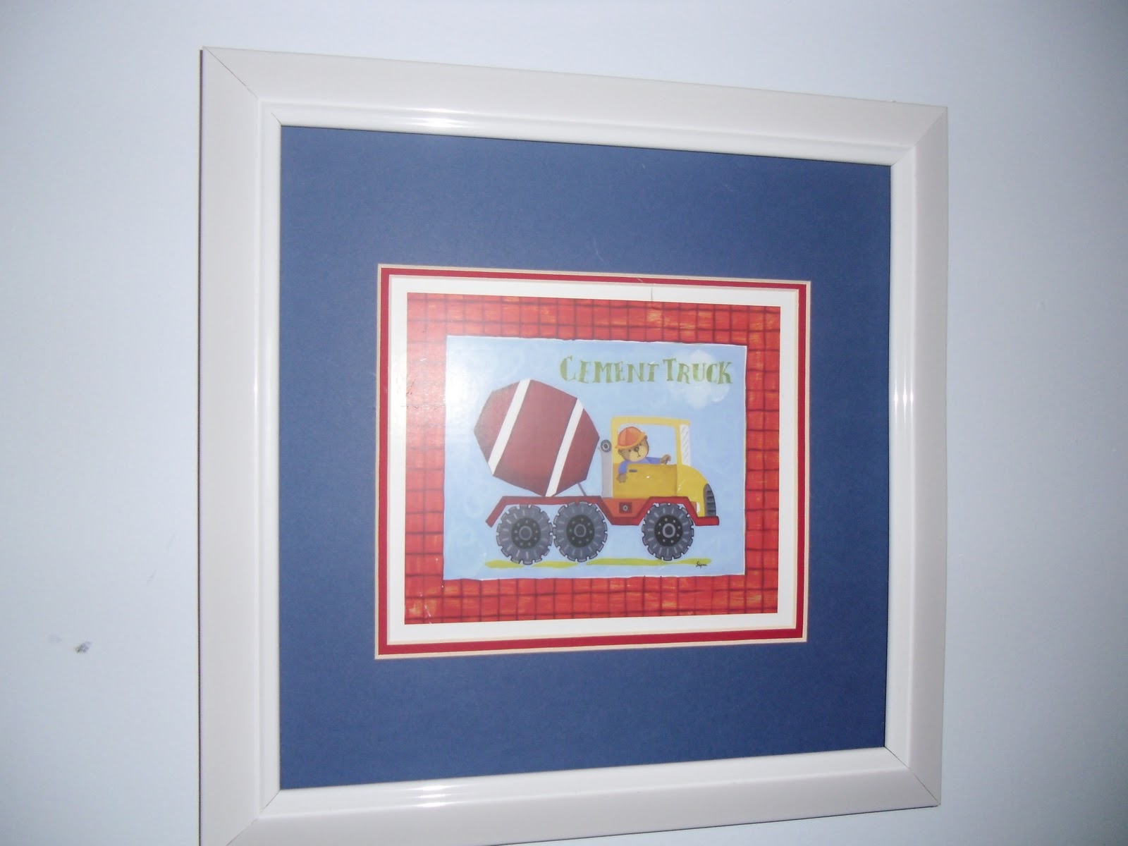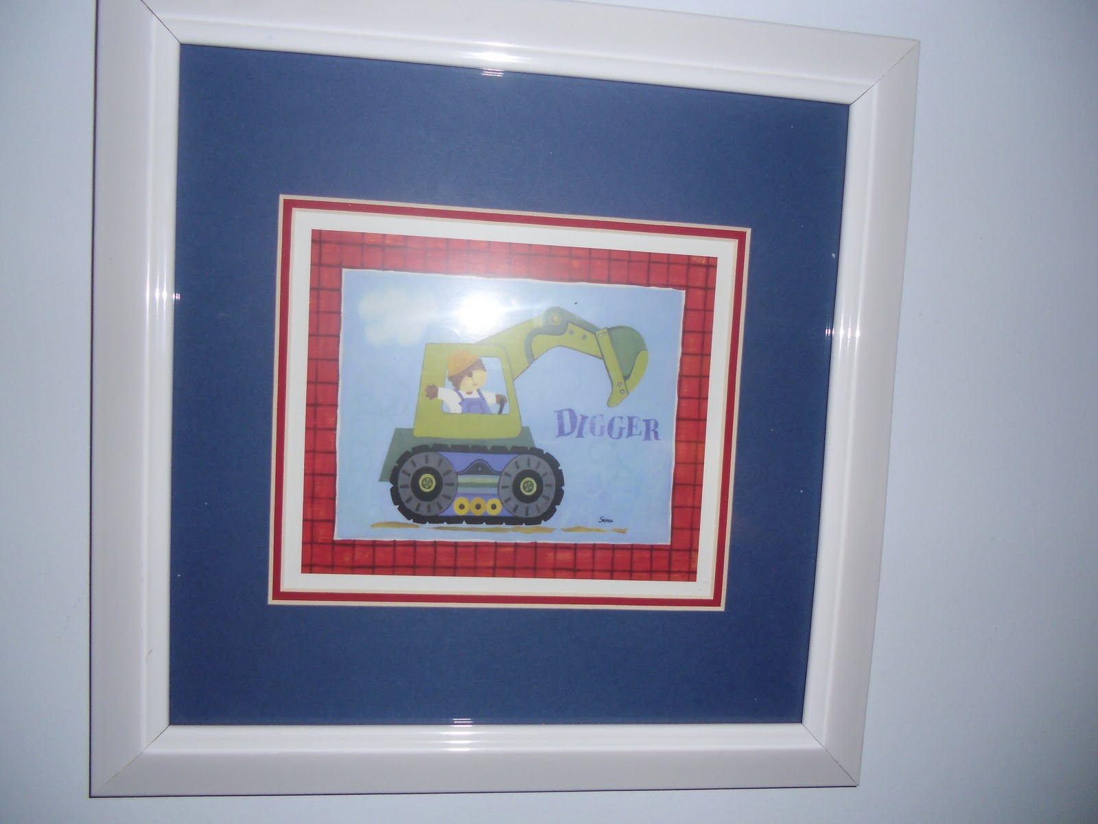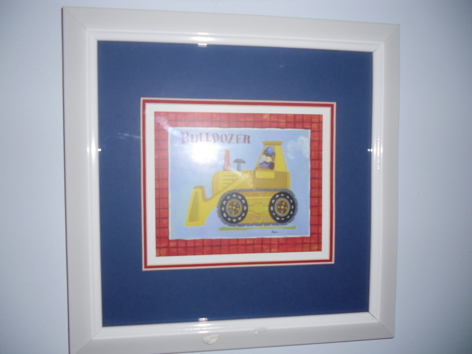 cute pictures on the walls from Bed, Bath and Beyond…. Backhoe Digger….
