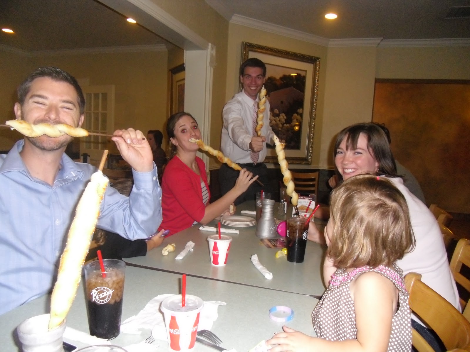 Look at the size of these bread sticks!   John’s expression says it all!  And they were delicious!