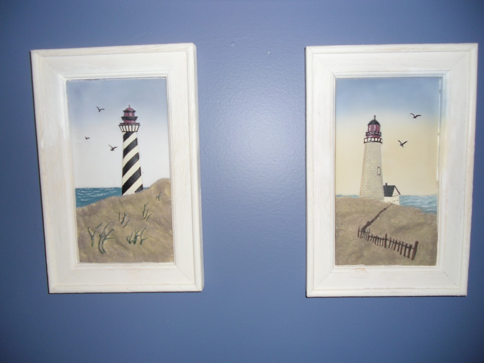 | Lighthouse decor is popular now too….I found lots of lighthouse pictures at Bed, Bath and Beyond….and used a 20% off coupon too! |