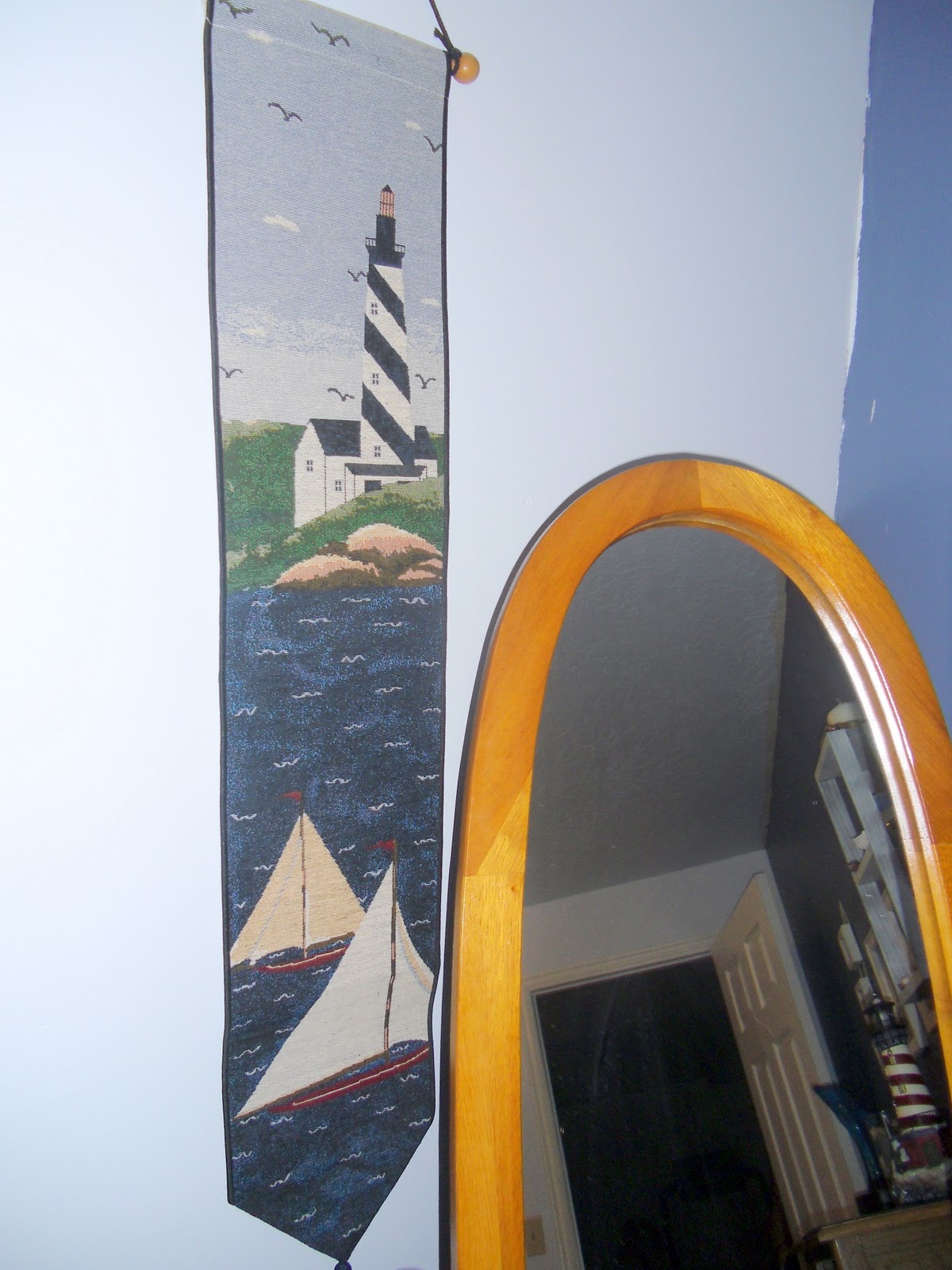 | Lighthouse and sailboat tapestry…..I sent away for this too, from a catalog….It’s pretty in person…. |
