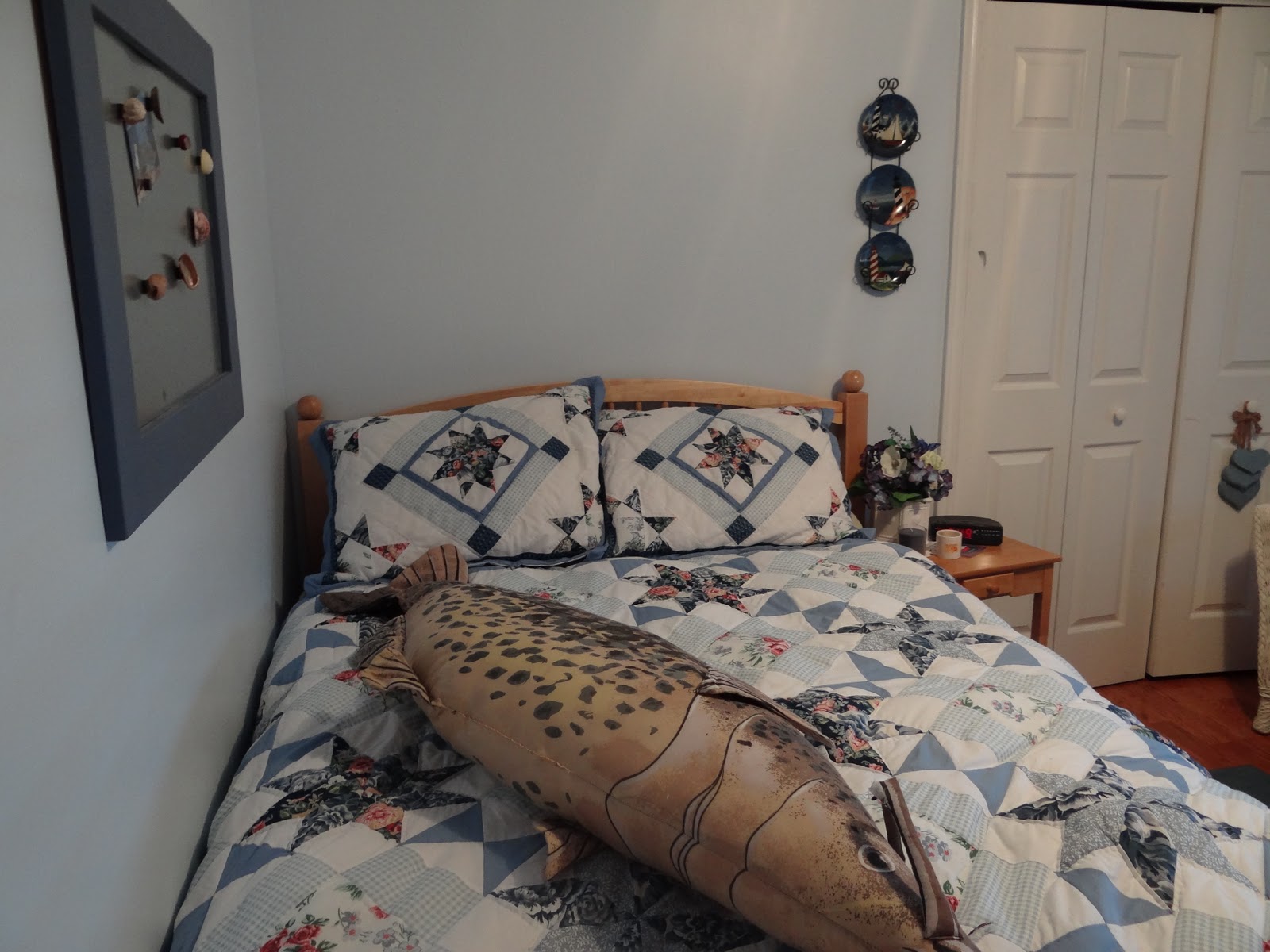 | One of my kids got this giant stuffed fish at a carnival I think….but it works in the room ! |