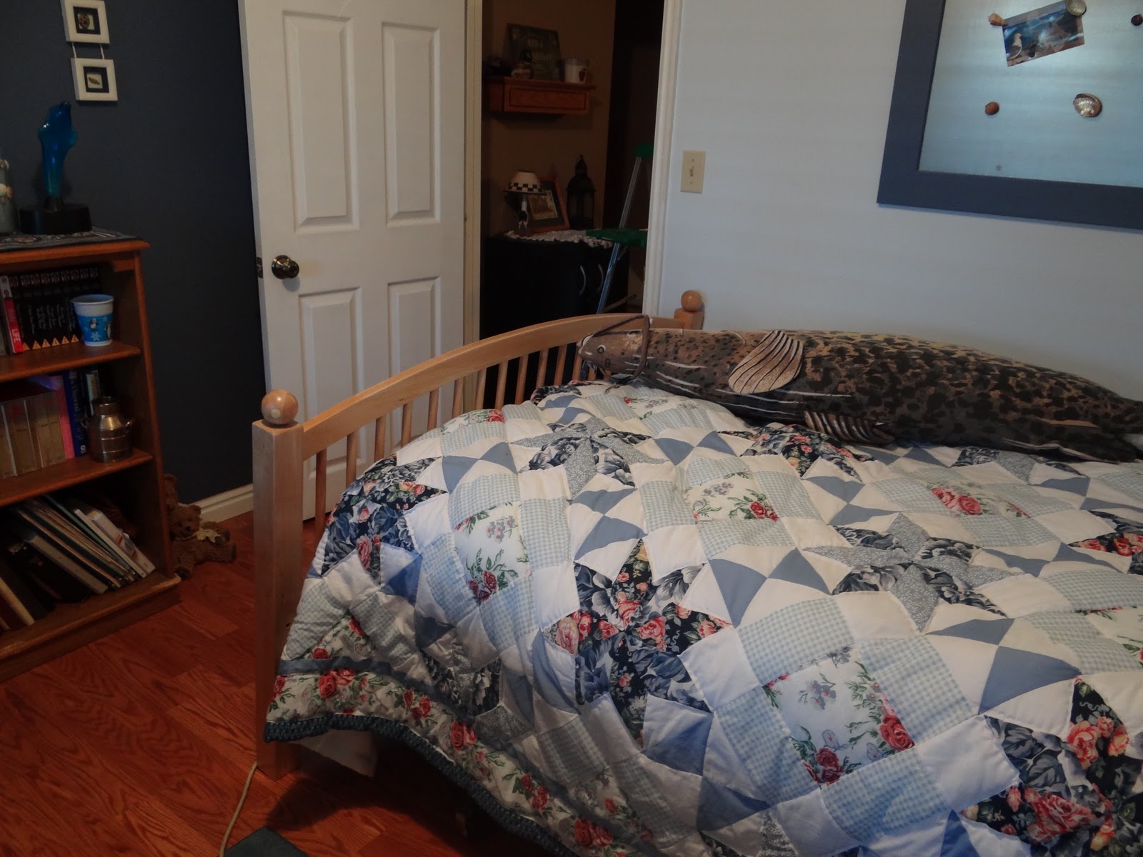 | The blue and white “Star” quilt I purchased at a quilt shop….. |