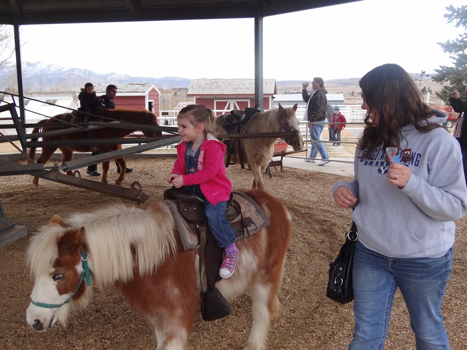 We couldn’t get my granddaughter to go on the horse, and then the nice lady running the ponies just took her