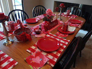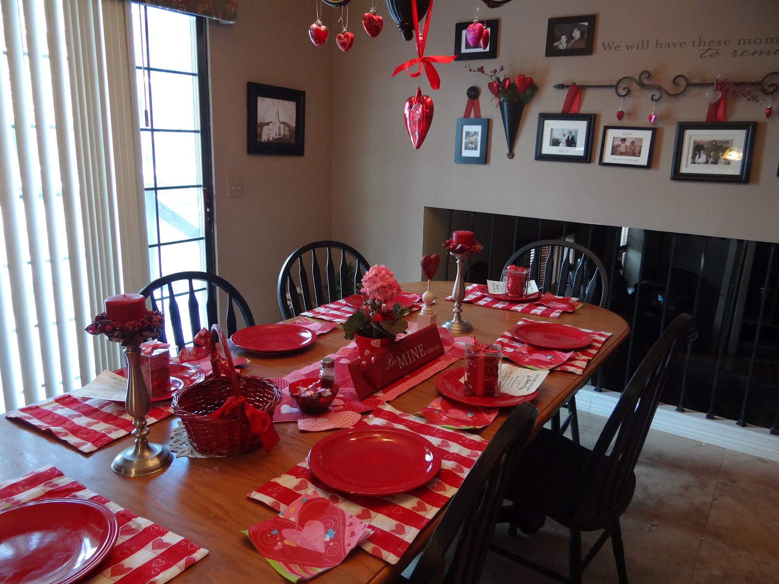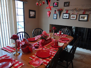 | My Valentine Dinner table…so cute, right? I love the hanging heart ornaments hangin from the chandelier…. |