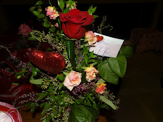 | The hubs got me some Valentines flowers….I forgot to take a close up pic till the little baby roses were kinda wilted….oh well…it’s still a fun memory… |
