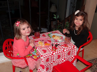 | Here’s my granddaughters at their little Valentine kiddie table with the heart plates….aren’t they sweet? |