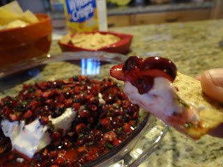 | You can freeze fresh cranberries in the bag to use all year…did you know that? Yeah, the cranberry salsa keeps in the freezer too….so I put half of it away in a tupperware for another party! |