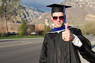 Do you wanna know what a great parent payback is? A kid who graduates from college. Oh yeah!That hits you where you live. It was an awesome family day yesterday April 20th. The best part of the ceremony was when the MC asked all those who had served missions to stand. Literally all of them stood up! It was really quite amazing. They stood over and over as the Dean asked questions (like how many had parked in the faculty’s parking spaces…) LOL. Gotta love it.