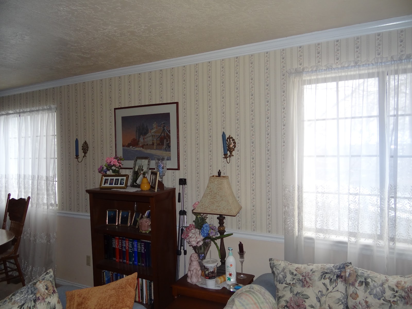 Anyhoo, here are the finished walls. They don’t look bad, they aren’t my favorite, but they definitely ARE an improvement over the 80s groovy floral-and-striped wallpaper from the previous owners.