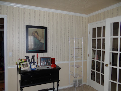 | Here’s what it looked like after the wallpaper was stripped off….very “peachy”! |