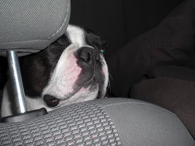 He would hog up all the space in the front seat though…..:D And snore loudly the whole way there…..