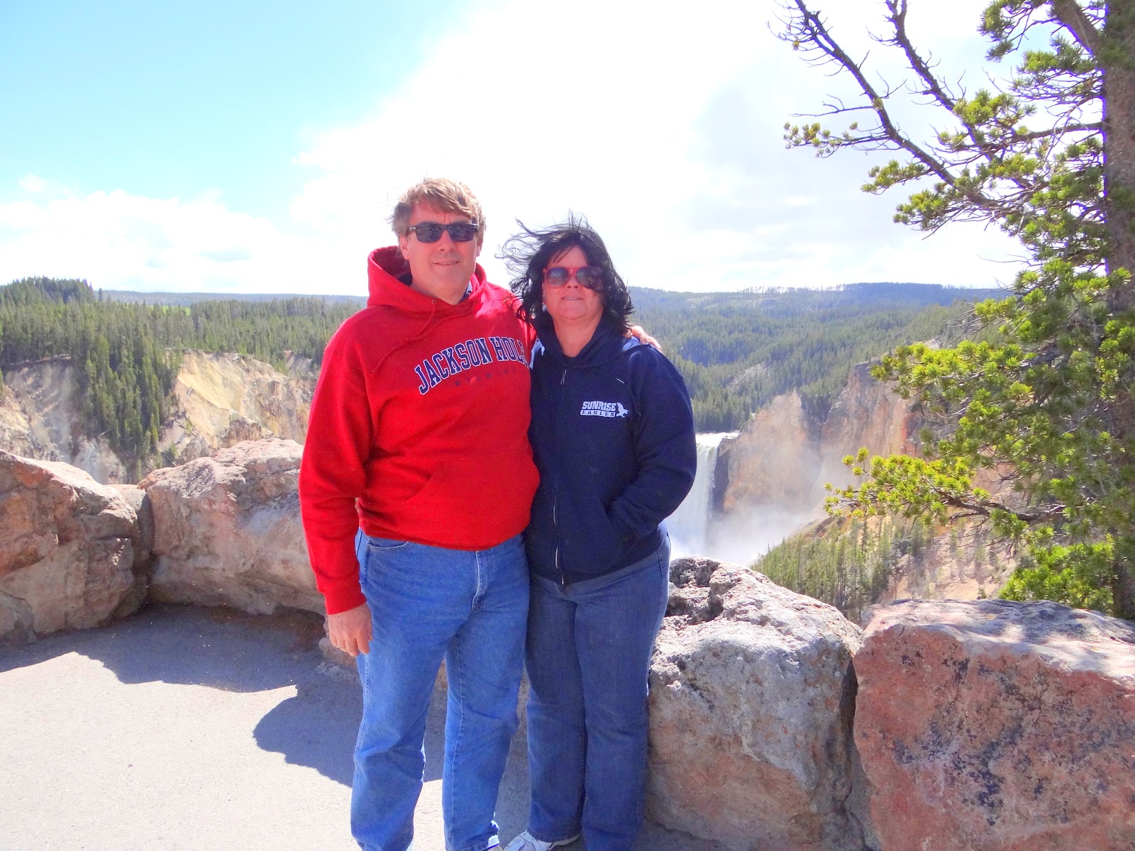 I started crying as I took this picture. My hubs was already a little weepy and I caught on immediately. He has a photo he keeps on his desk of my son Danny and he, taken at this exact spot about 9 years ago when Dan was a 14 or 15 year old teenager on a Scout trip to Yellowstone. His dad came with him on that scout outing (so glad he took that time) and they snapped this photo together.