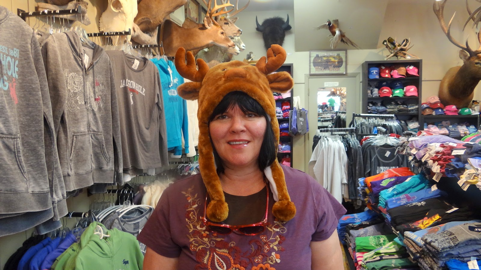 | Johnny looked all over but decided on a red hoodie….He liked this one that says Jackson Hole…. I secretly also got him a Yellowstone T-shirt with Moose all over it….snicker….John Moose….. |