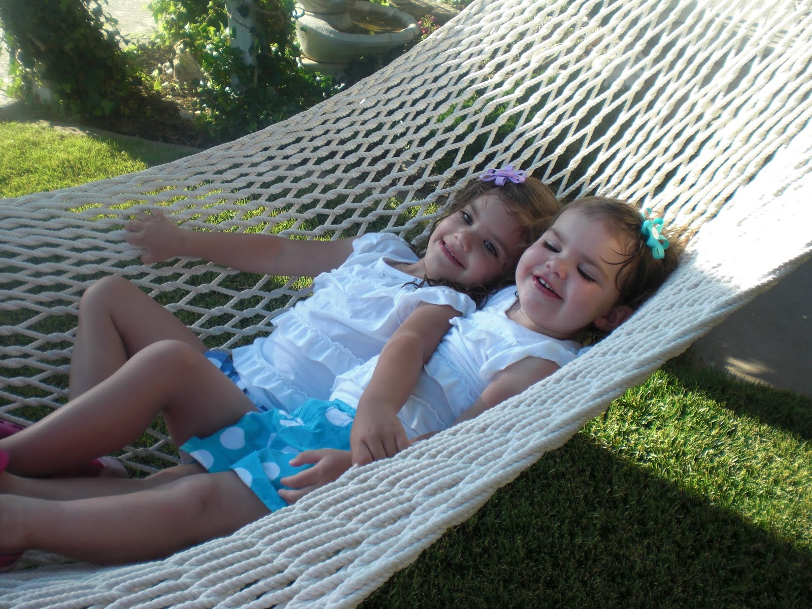 | Marisa and Megan my granddaughters rocking in the hammock….so cute! |