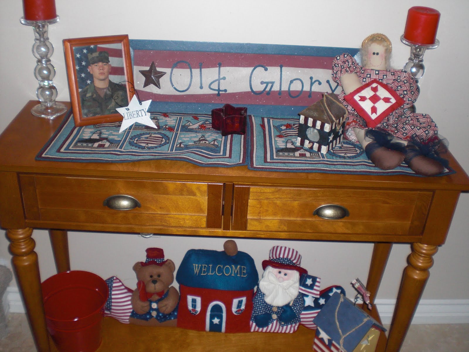 | I love to decorate with Uncle Sam and my patriotic quilt.. |