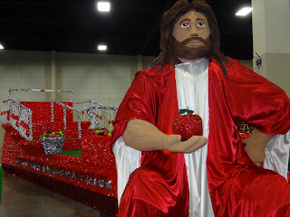 | This was a strange float….people were getting their picture taken next to the giant Jesus…..kinda strange! |
