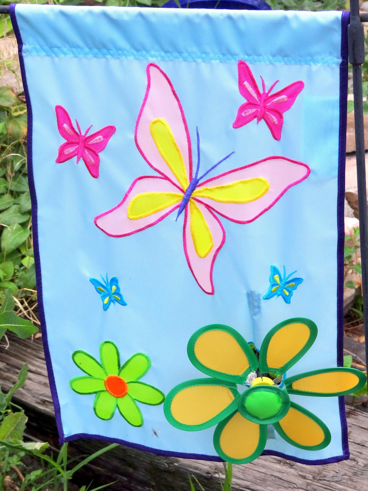 | I found this spinning floral and butterfly spinner flag at Hobby Lobby in the garden clearance. It was $2.00! |