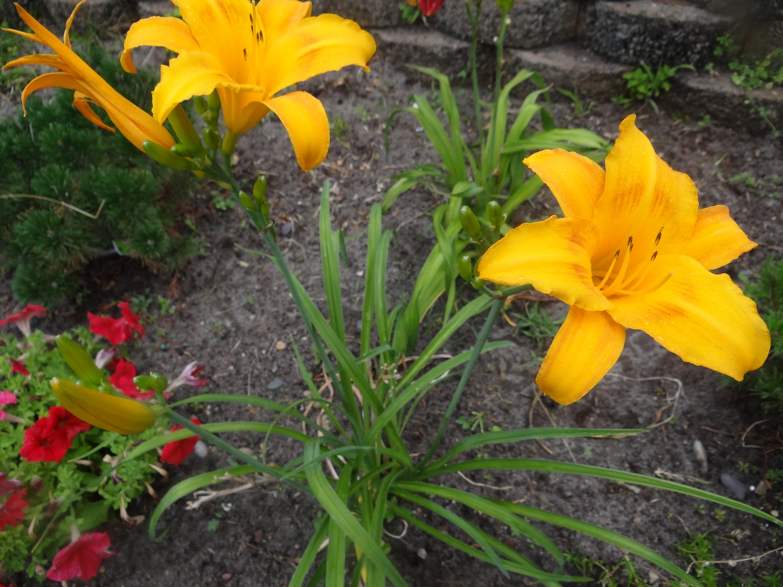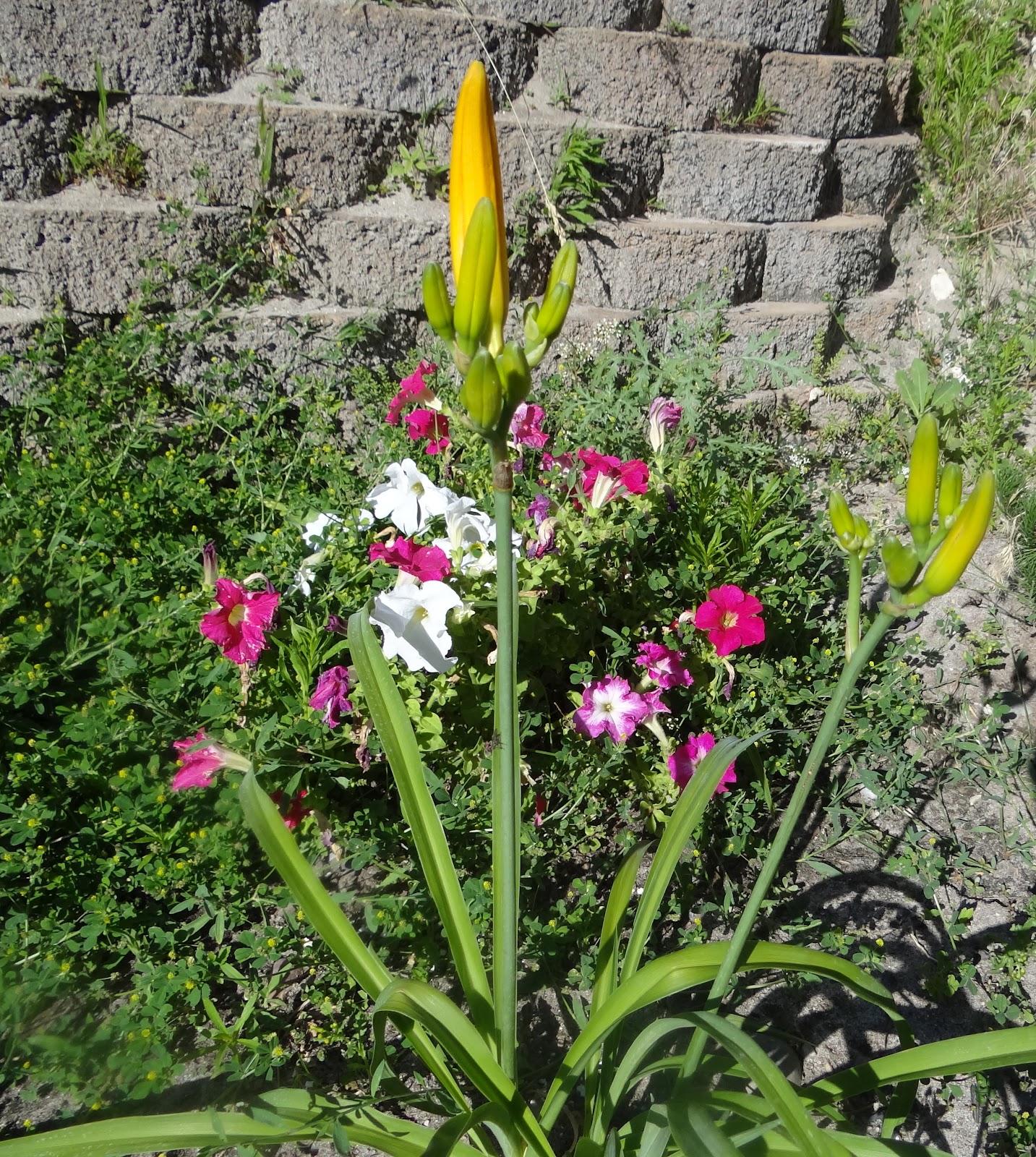 | My backyard bottom terrace…with my lillies just coming up. |