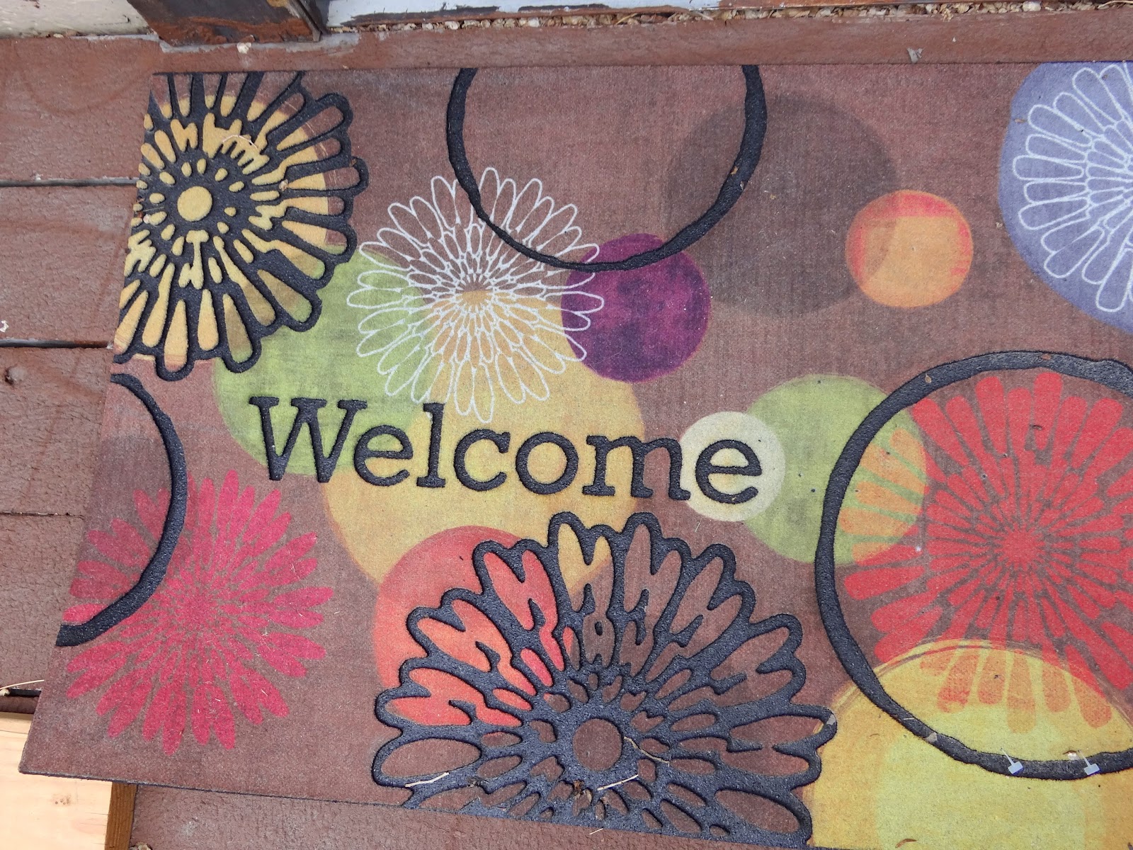 | Love this new floral welcome mat I got for the backyard deck. Isn’t it cute? It’s a Martha Stewart mat from Lowes. |