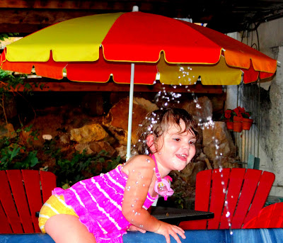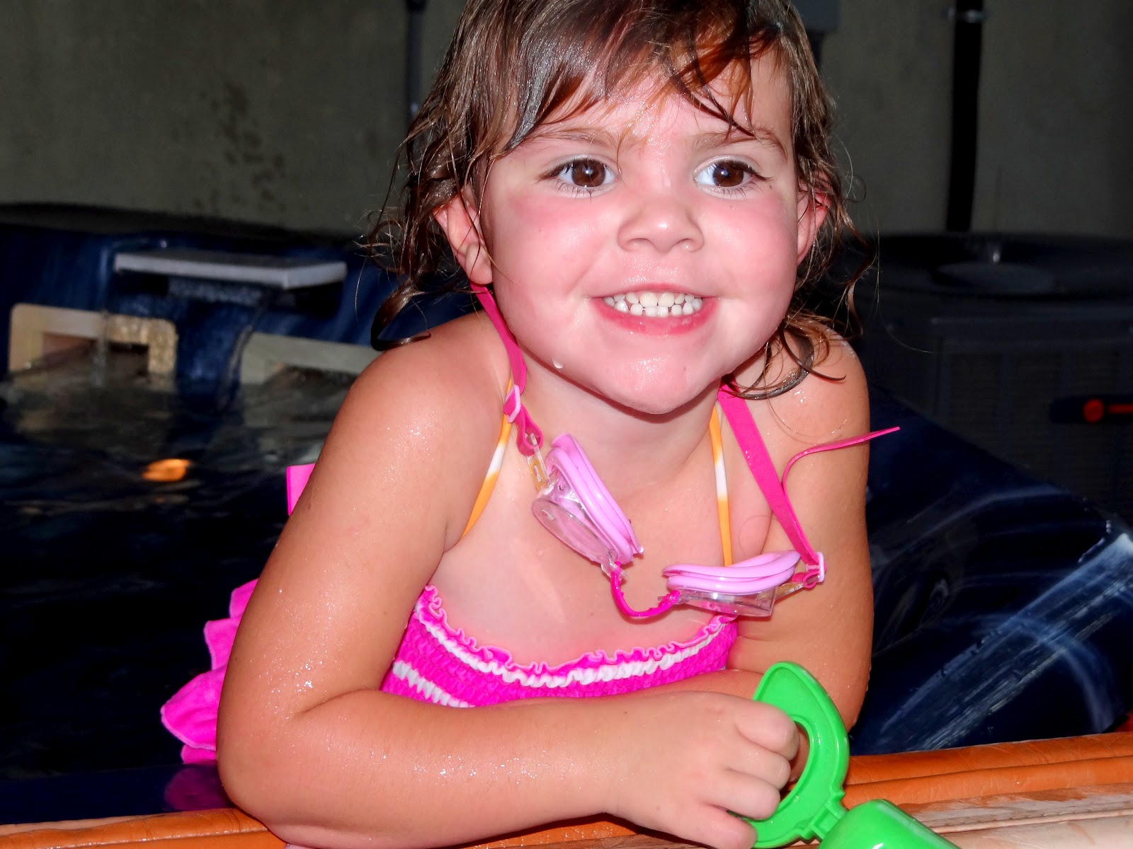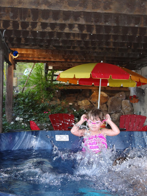 | So funny….we just crack up at this one….she is such a fish in water. We love these little cuties a lot. And we love our backyard jacuzzi a lot too. |