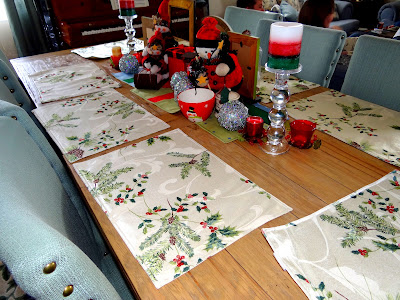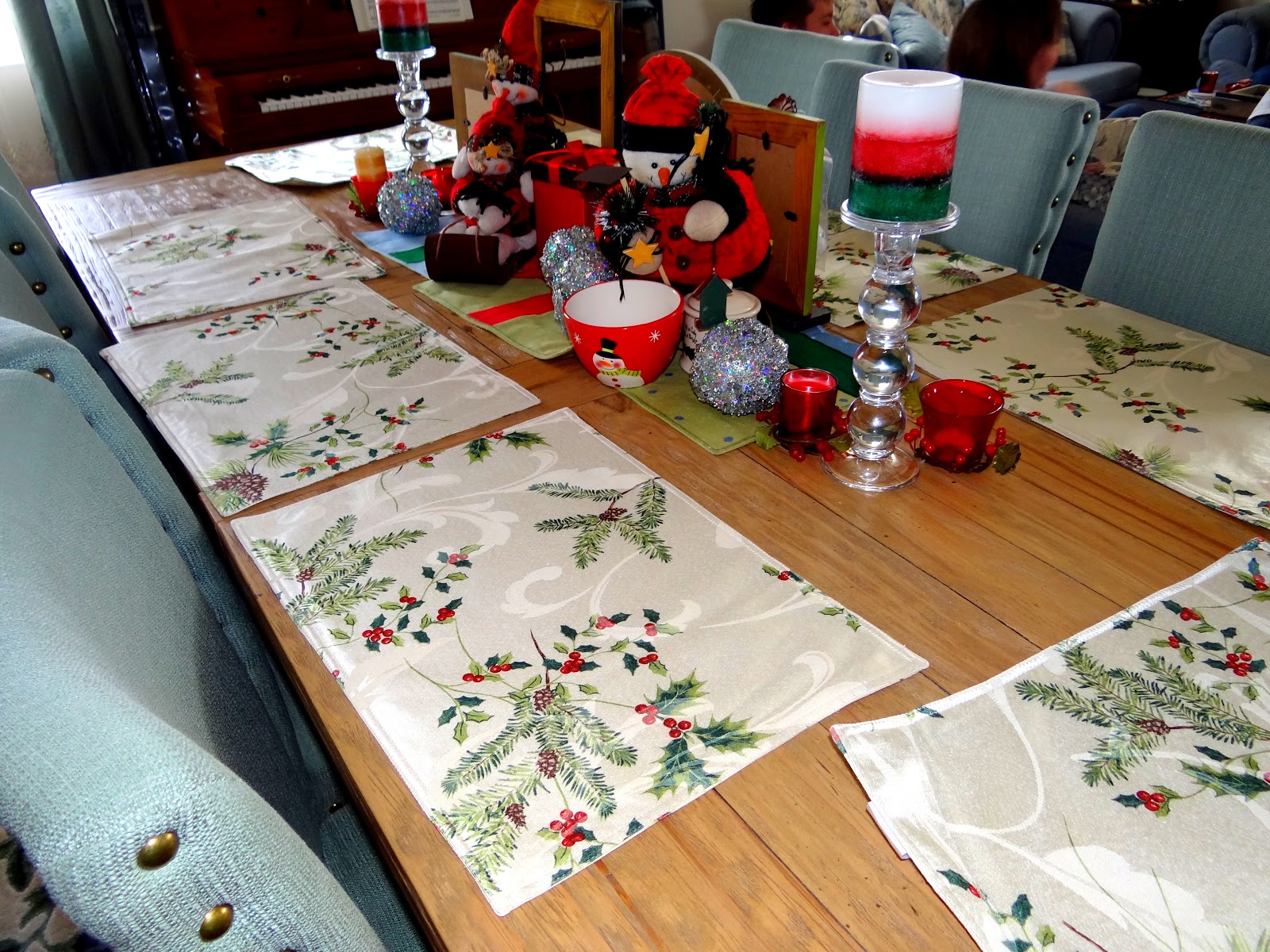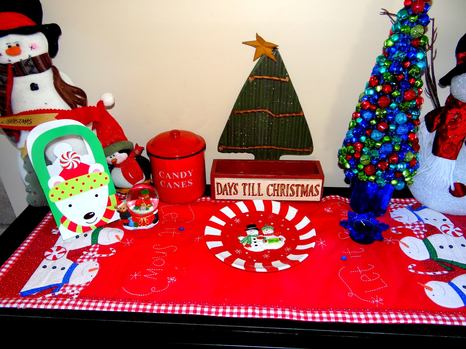 | This was the little kids’ table and I had just bought some new Snowmen plates and cups from Shopko. |