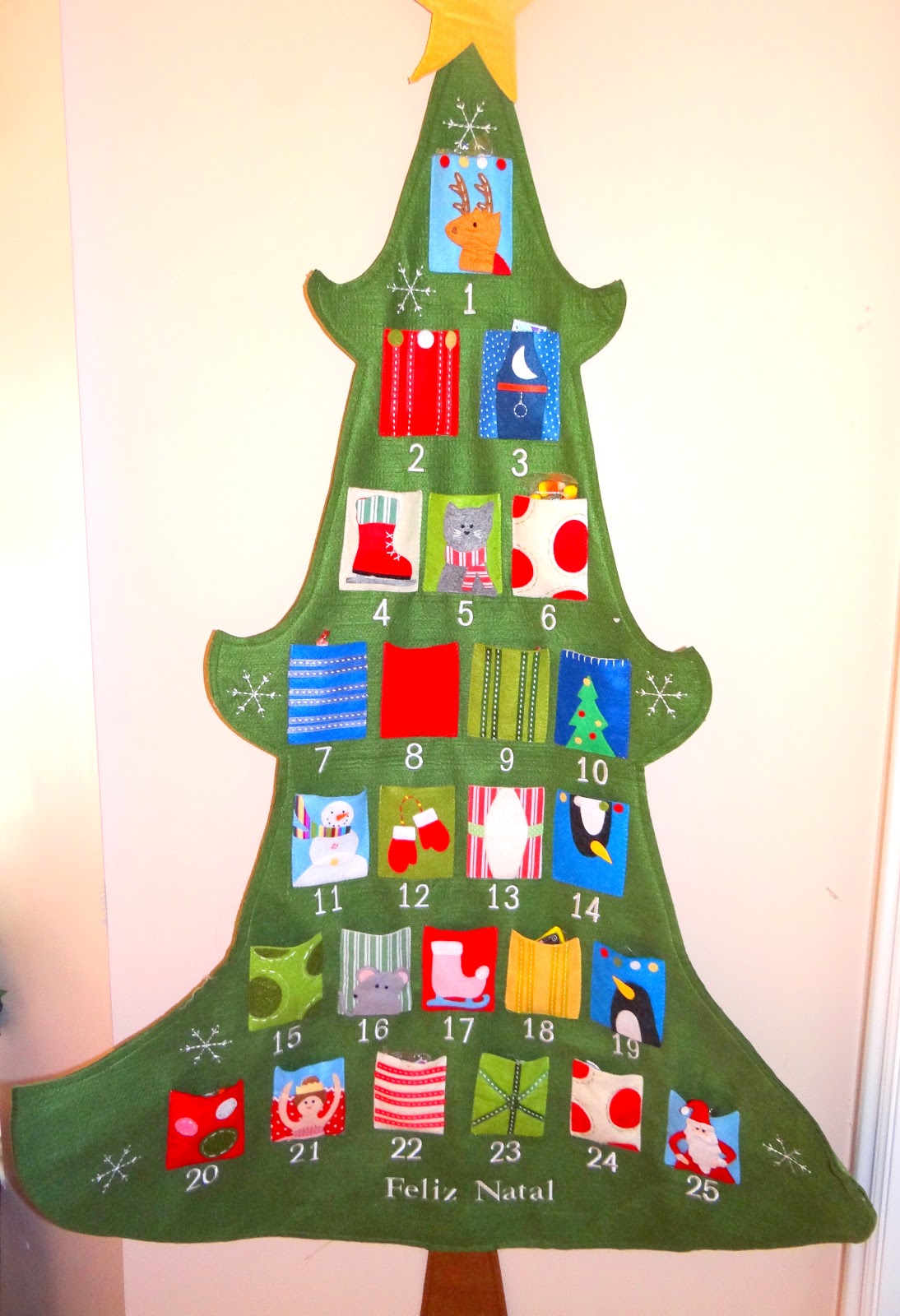 | this was one of my favorites….my little Pottery Barn Christmas Tree on the wall. Each pocket is for a little candy. Sweet! |