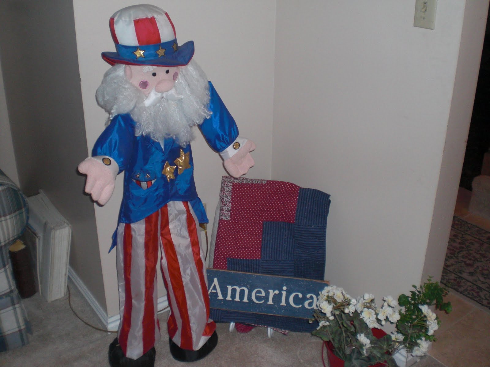 | My doggie keeps trying to bite the leg off my Uncle Sam…naughty Brucifer! |