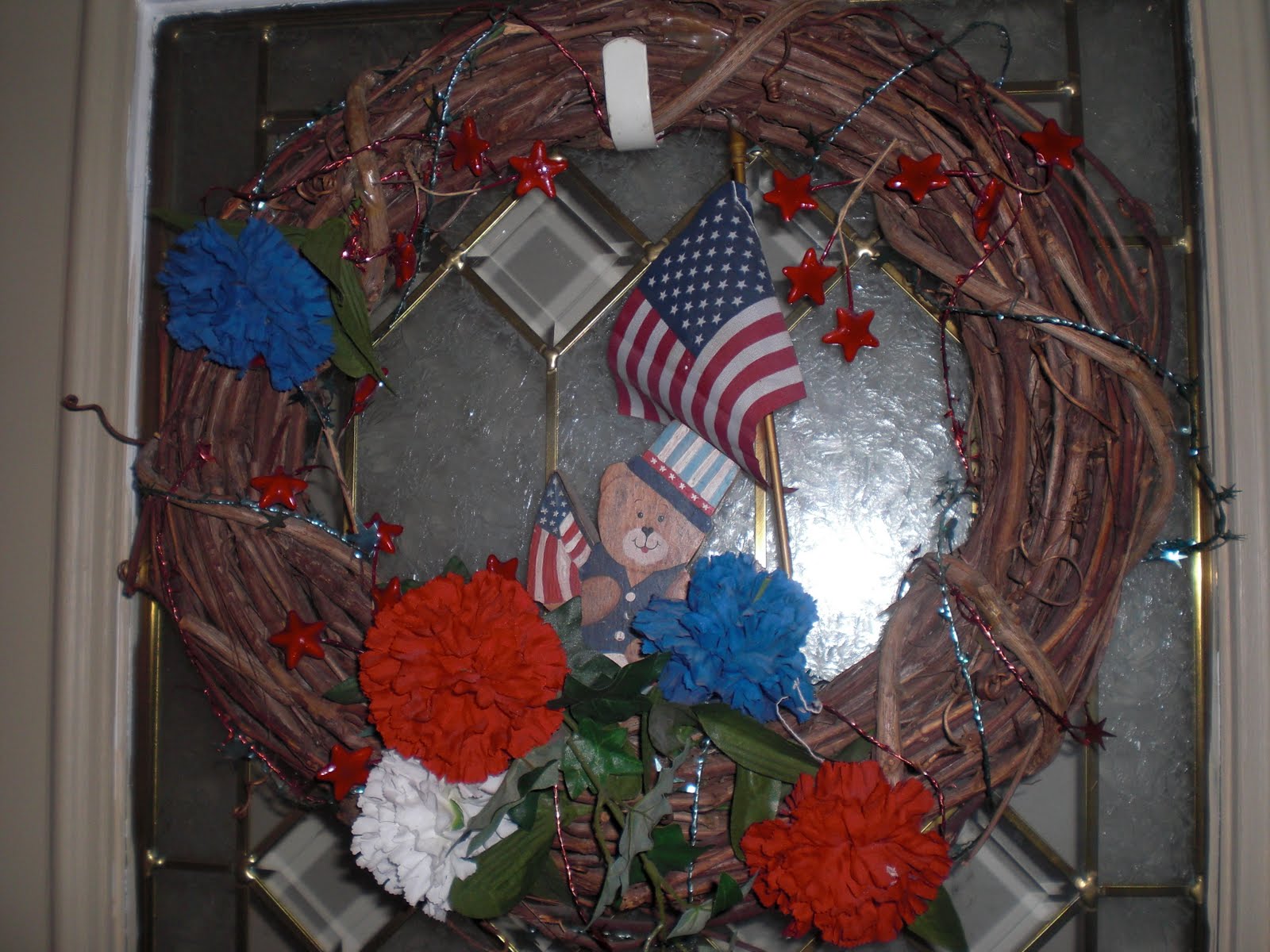| Here’s a close up of the front door wreath I made and I cut out the little tole painted bear… |