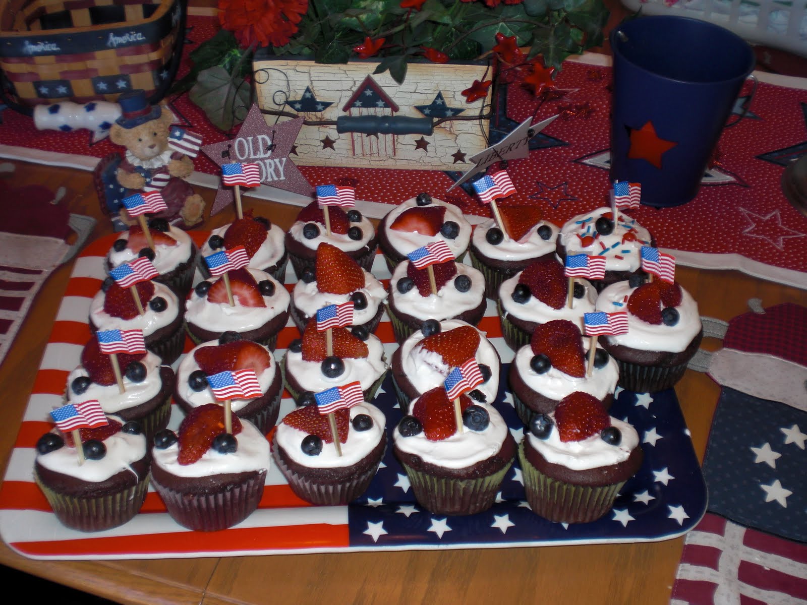 | Here are my 4th of July cupcakes….the frosting was 1 c.marshmallow creme, 1 c. cool whip, 1 small brick cream cheese….yummy! |