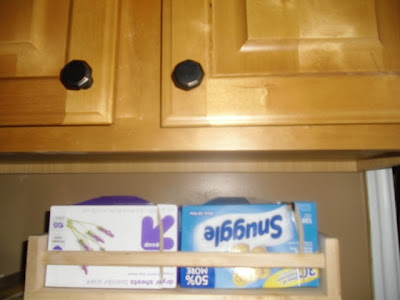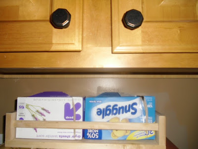 IKEA spice racks made into Snuggle dryer sheet holders. Yeah, I’m crafty! 2 fit in here perfectly!!