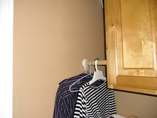 The hubs added this little closet pole to the space between the wall and the laundry room cabinets for more storage. What a good man he is.