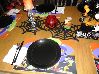 | Here is my table decor. I got black plates last year. The centerpiece was a birthday present from my daughter…she has good taste. Thanks Tiffany! |