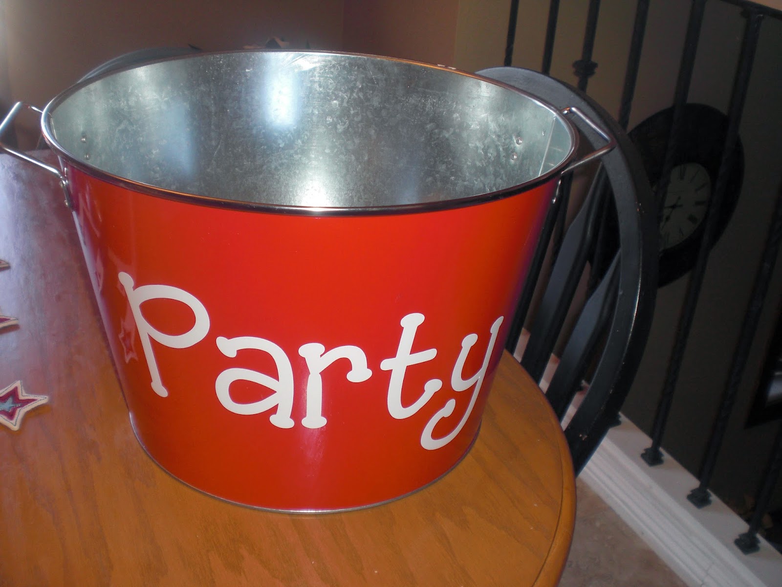 | My daughter made this vinyl “PARTY” sign to go on this cute red bucket |