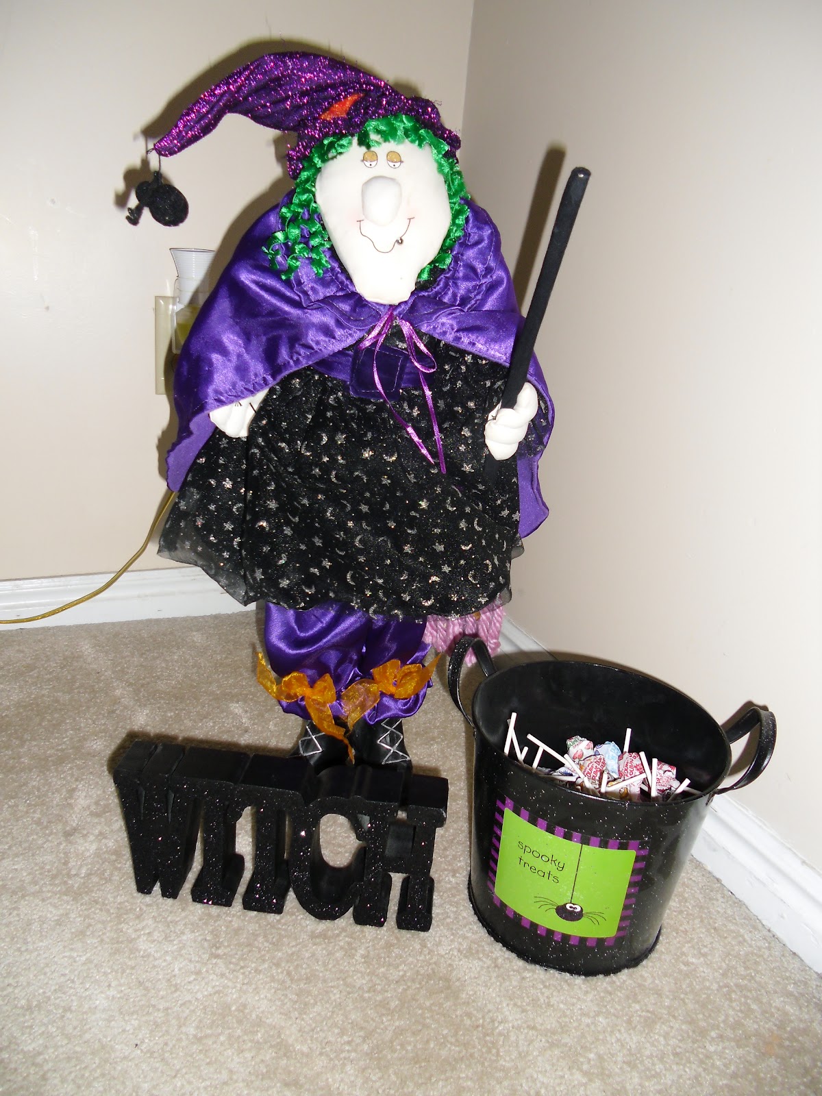 | Witchy Witch is relegated to the corner of my living room for now! I can’t put anything good in the candy bucket yet, or it will all get eaten by the 31st! |