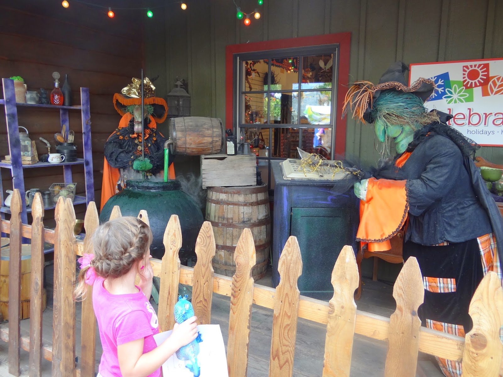 You go throughout the outdoor shopping village and look for witches to match each of about 20 clues. Then if you find them all you get a cookie in the sweet shop bakery. The girls loved that part.